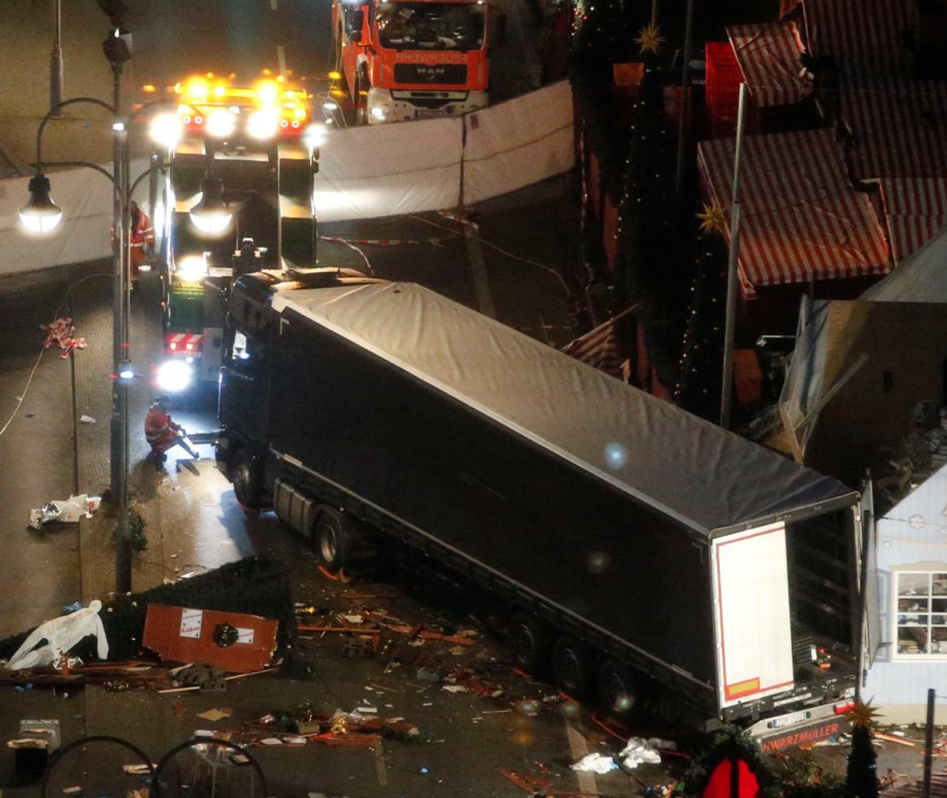 Ambulancias y camiones de bomberos iban de aquí para allá alrededor del mercadillo, atendiendo a los heridos, llevándose a los más graves al centro universitario Charité, que ha habilitado un gabinete de crisis; desatrapando víctimas y retirando escombros.