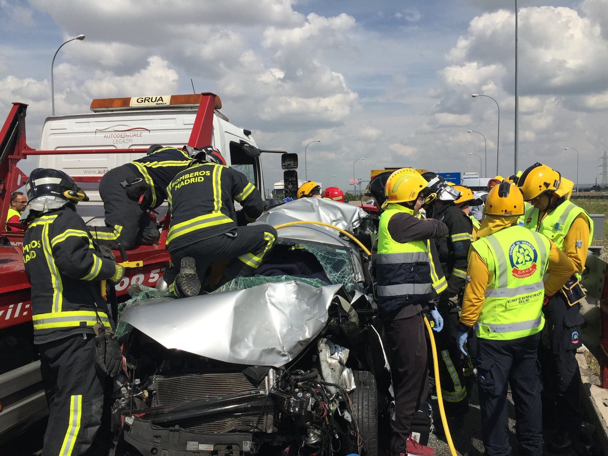 La víctima ha sido liberada por los Bomberos del Ayuntamiento de Madrid tras un complicado rescate debido al estado en el que había quedado el vehículo.