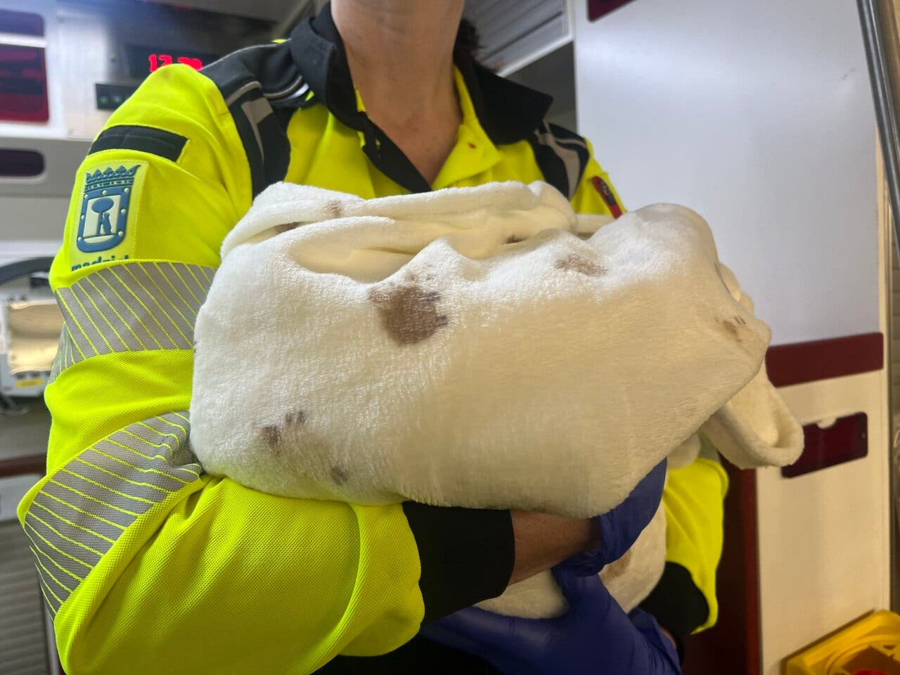 A la llegada del SAMUR, el niño ya había nacido. Los sanitarios han cortado el cordón umbilical y han trasladado a ambos en perfecto estado al Hospital Gregorio Marañón.