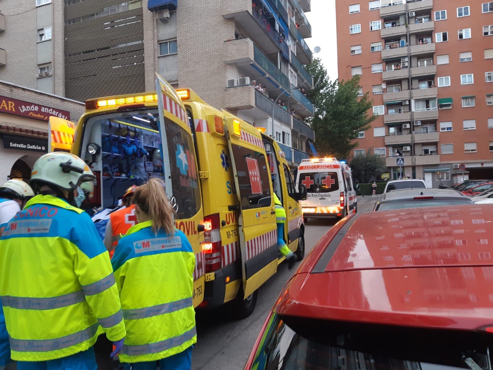 Los sanitarios del SUMMA atendieron a la madre de 36 años que presenta una fractura abierta de tibia y peroné y un fuerte golpe en la cabeza. Fue trasladada con pronóstico grave al Hospital Puerta de Hierro de Majadahonda.