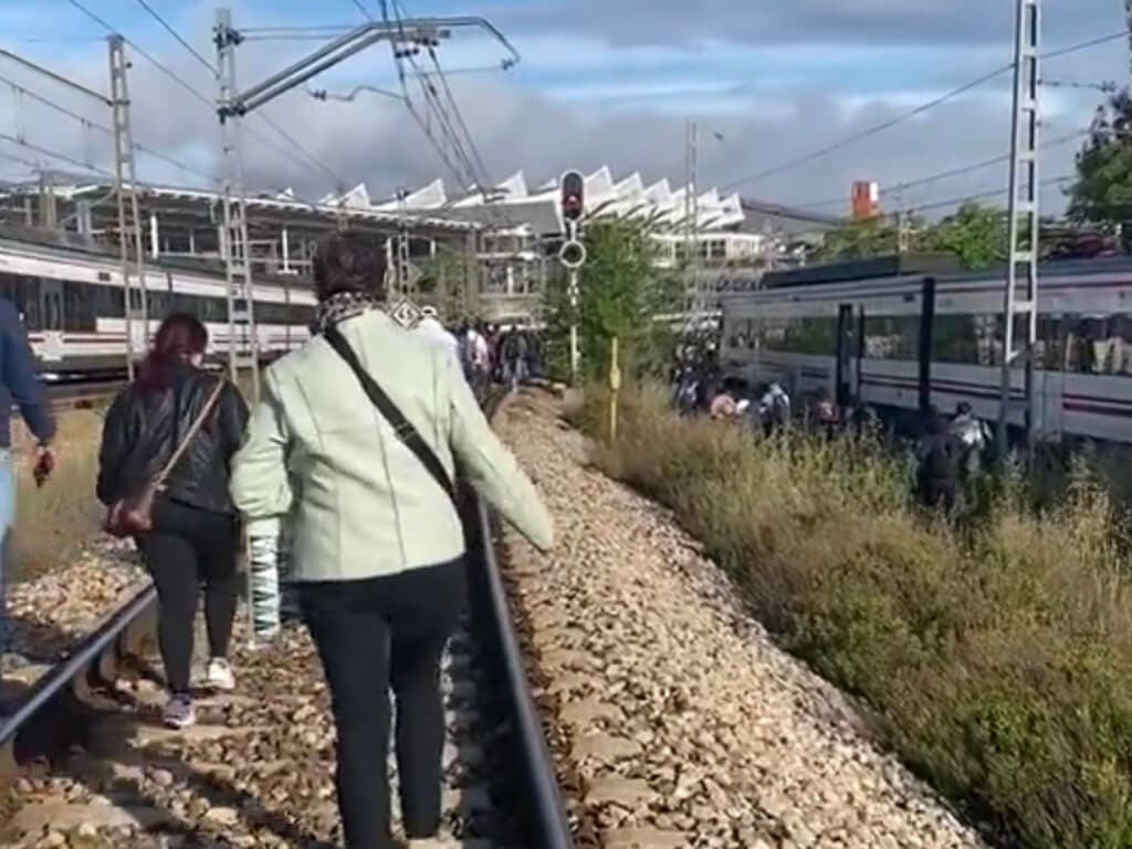 «El Cercanías de Madrid un día normal: una hora encerrados en un tren donde no podíamos ni respirar, sin aire, con las puertas y ventanas cerradas, sin que nos notifiquen nada, la gente se desmayaba y una vez nos abren andando por las vías como si nada». ha publicado en X otro viajero afectado.
