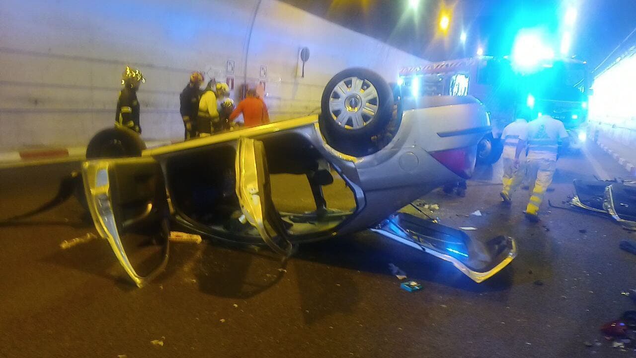 Una pareja de ancianos queda atrapada tras volcar su coche en el túnel de Somosierra