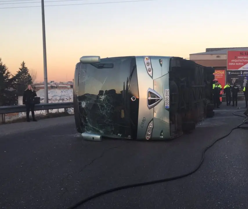 Varios heridos tras volcar un autobús escolar en Fuenlabrada