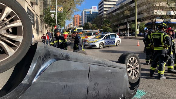 Vuelca un coche en un aparatoso accidente en el centro de Madrid