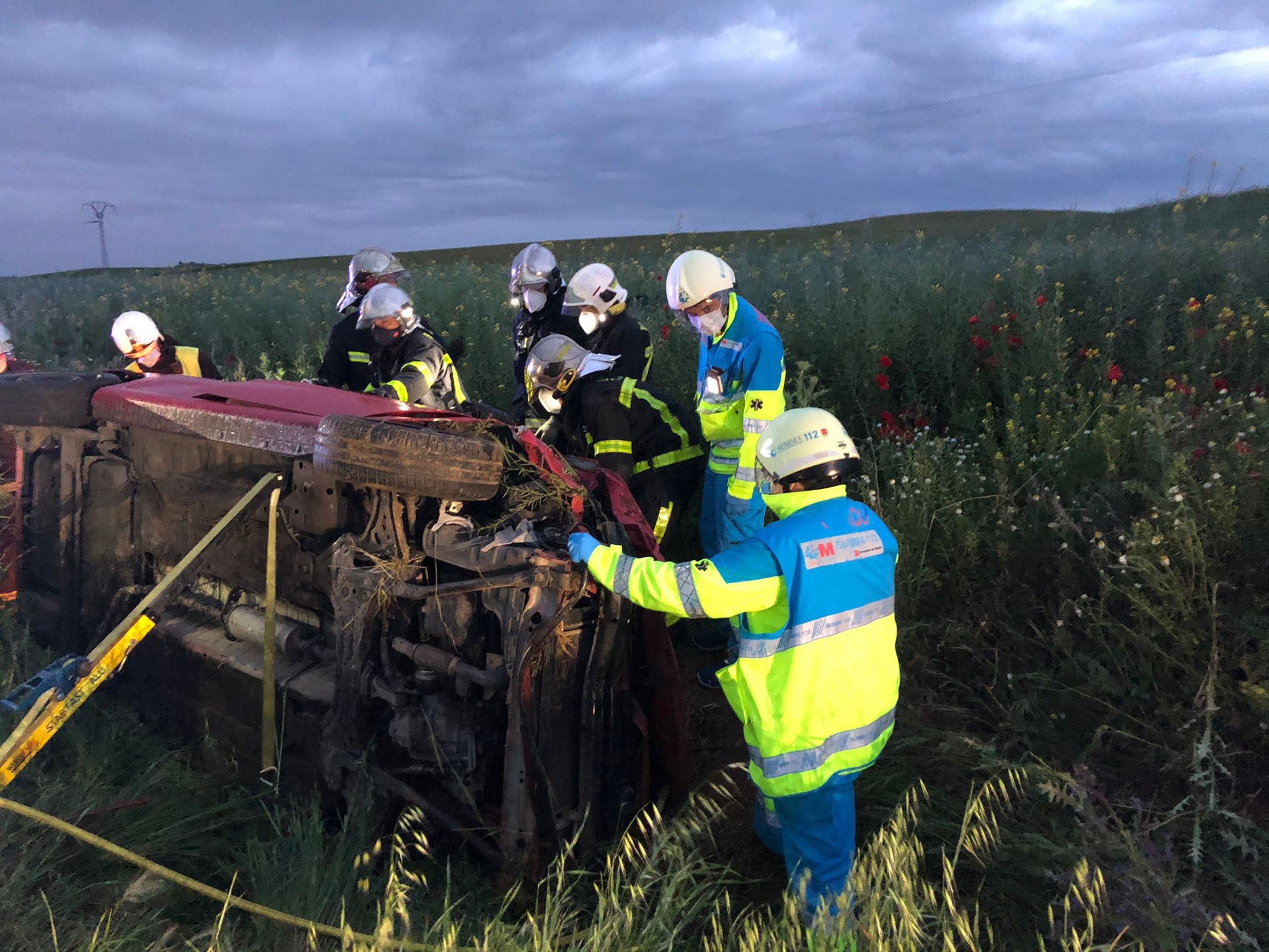 La conductora y única ocupante del coche ha quedado atrapada en el interior y ha sido liberada por los Bomberos de la Comunidad de Madrid tras un complicado rescate que ha durado 50 minutos.