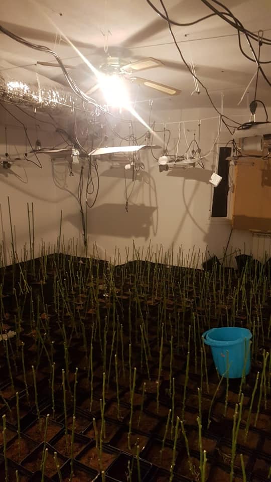 Las diligencias fueron remitidas al Puesto de la Guardia Civil de Meco y tras la coordinación entre ambos cuerpos, el 21 de febrero por la mañana procedieron a la entrada en el domicilio, encontrando en su interior un total de 579 plantas de marihuana en la parte superior de la vivienda. En una de las habitaciones se encontraba la producción en proceso de secado, lista para su venta y distribución.