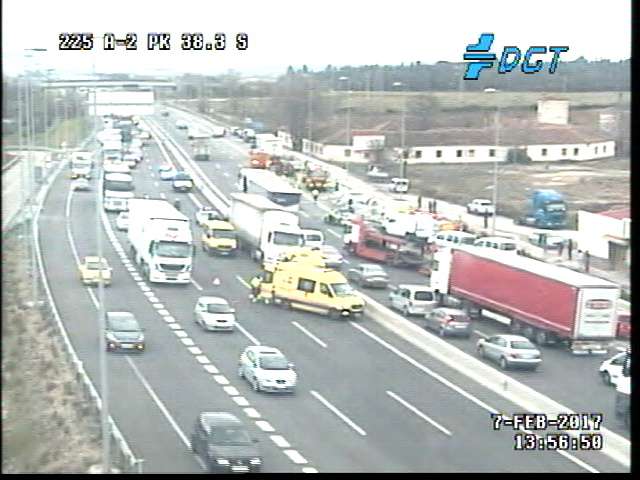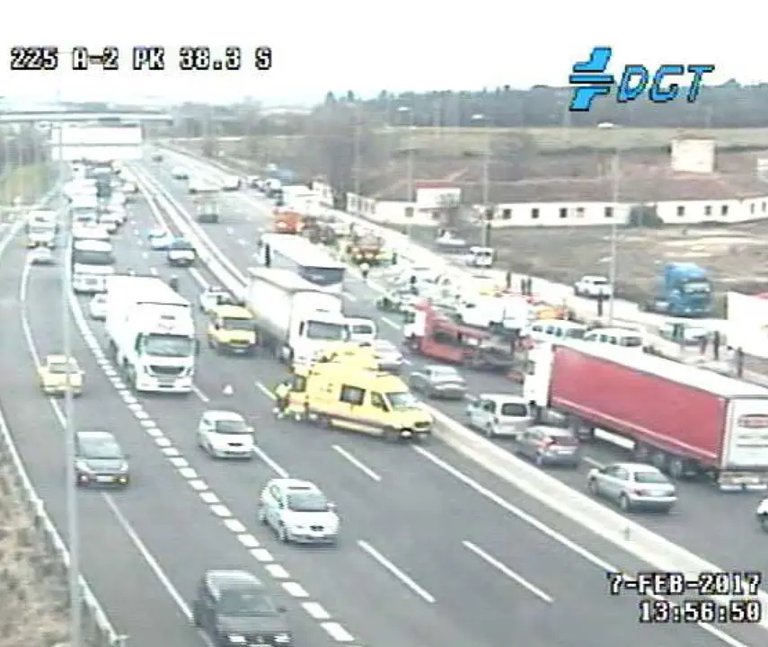 El vuelco de un camión provoca importantes retenciones en la A-2