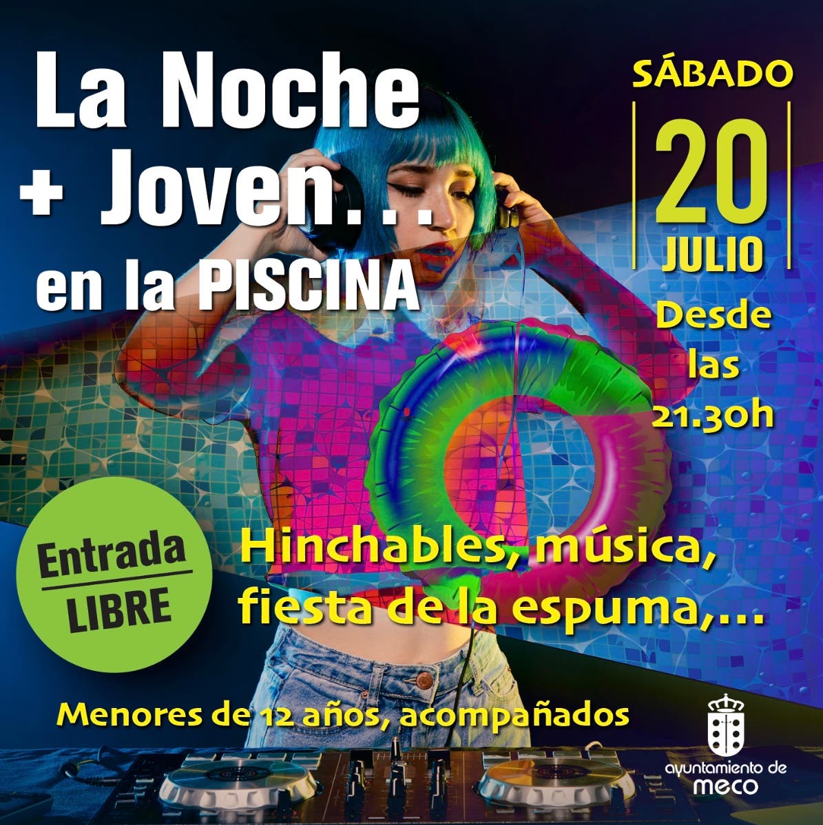 El Ayuntamiento de Meco celebra este sábado, 20 de julio, La Noche + Joven en la piscina municipal con entrada gratuita.