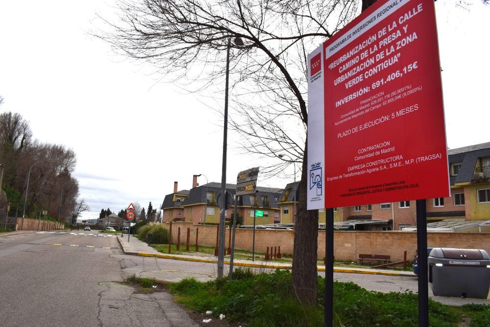 Esta semana comienzan las obras de reurbanización de la calle Camino de la Presa y de la zona verde contigua, ha informado el Ayuntamiento de Mejorada del Campo. El proyecto incluye el asfaltado y acerado del Camino de la Presa, así como la mejora de la iluminación con más puntos de luz.