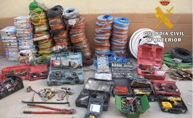 La Guardia Civil ha conseguido recuperar efectos robados valorados en 25.000 euros, incluyendo grapadoras industriales, martillos neumáticos, sierras de calar, taladros, rollos de cable de cobre, mangueras de cable, maletines de herramientas y numerosos destornilladores.