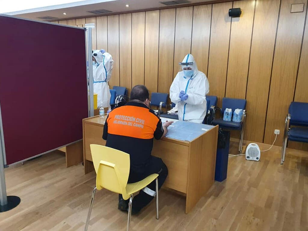 El Ayuntamiento de Mejorada del Campo está realizando test rápidos a los trabajadores y personal municipal de los servicios esenciales, que están en primera línea en la lucha contra la pandemia sanitaria: trabajadores de limpieza, jardinería, conserjes, Servicios Sociales, Protección Civil, Policía Local y Guardia Civil.
