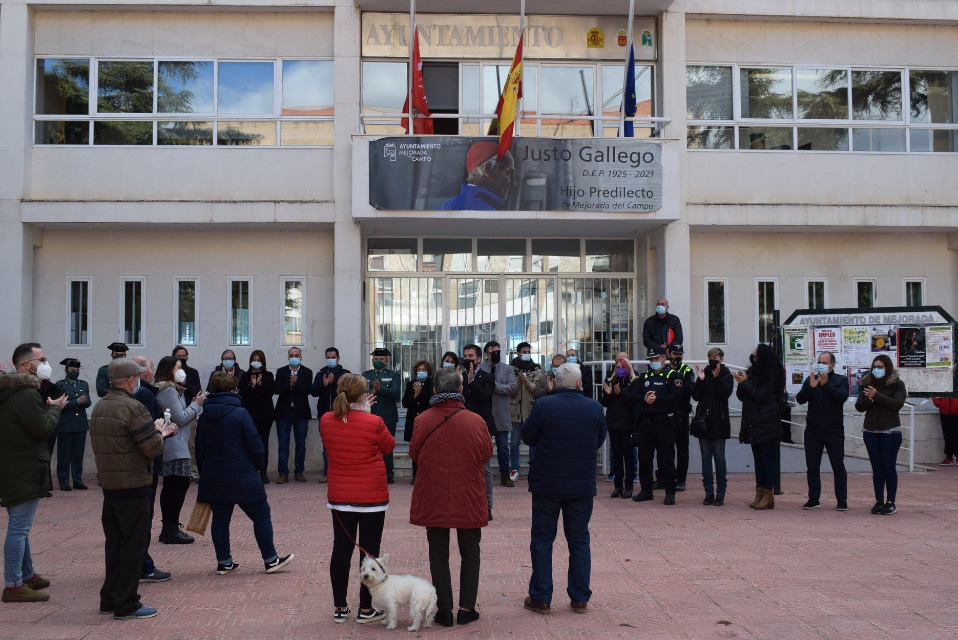 Este mediodía se han guardado cinco minutos de silencio en la Plaza del Progreso de Mejorada del Campo, frente al Ayuntamiento, en recuerdo y homenaje a Justo Gallego, el constructor de la famosa catedral de la localidad que levantó con sus propias manos.