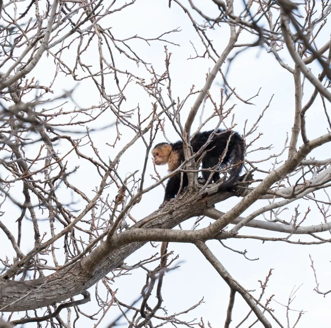 Agentes del Seprona de la Guardia Civil, de la Policía Local de Mejorada del Campo y personal de Safari Madrid rescataron el pasado domingo a un mono capuchino que estaba subido a un árbol en el jardín de una vivienda de la localidad, y que presentaba síntomas de desnutrición y estrés, por lo que no pudo ser capturado con anestesia.