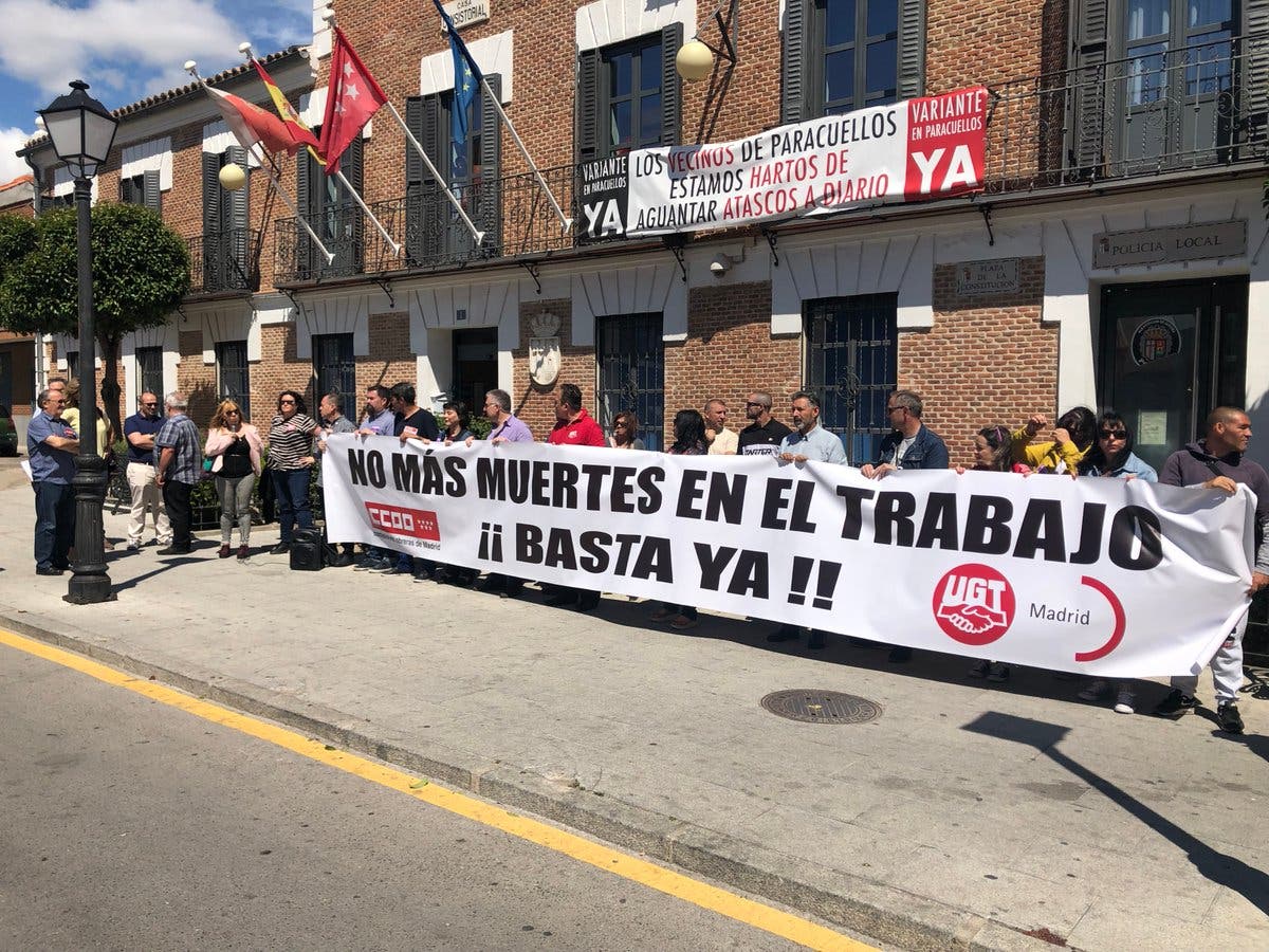 Comisiones Obreras y UGT se han concentrado este viernes en Paracuellos de Jarama para mostrar su consternación por el trágico accidente laboral ocurrido esta semana en la localidad, durante la reforma de una vivienda de la calle Doñana, en el que murió un trabajador rumano de 51 años aplastado por un muro, como adelantamos aquí en MiraCorredor.