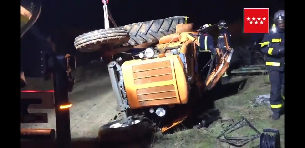 El tractor ha quedado volcado y el conductor ha fallecido prácticamente en el acto, teniendo que ser rescatado el cuerpo por los Bomberos de la Comunidad de Madrid