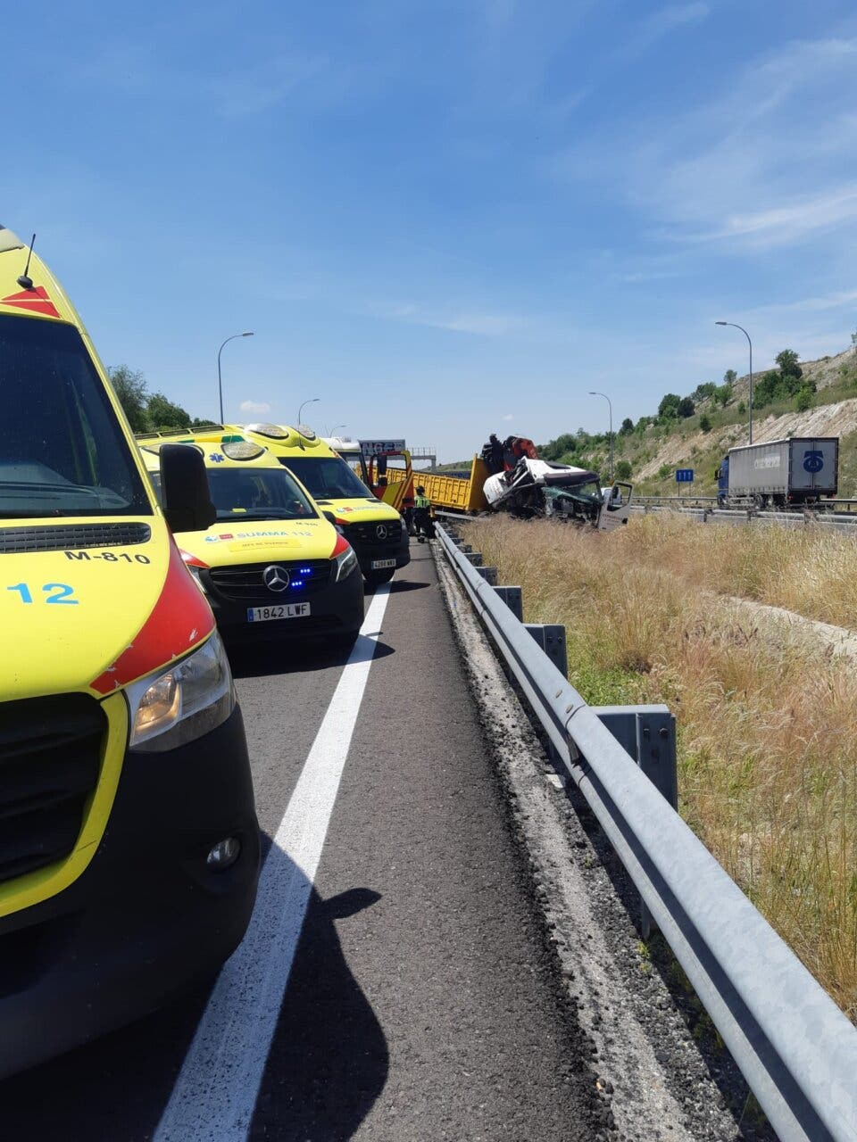 El siniestro se ha producido sobre las 13:15 horas y ha movilizado a Bomberos de la Comunidad de Madrid, Bomberos del Ayuntamiento de Madrid, SUMMA y Guardia Civil.