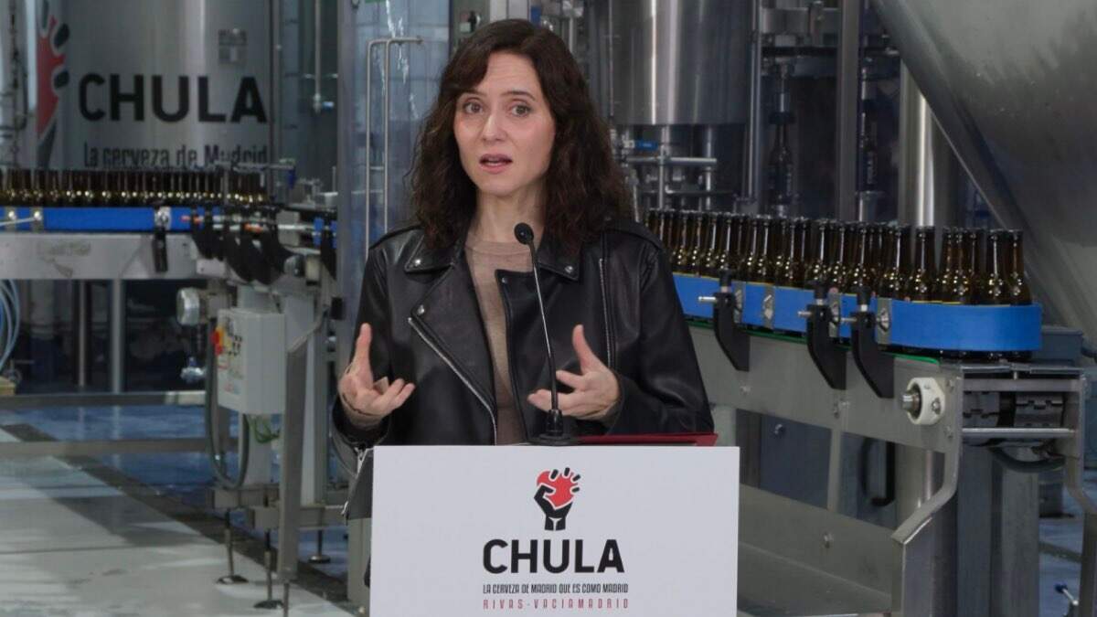 La presidenta de la Comunidad de Madrid, Isabel Díaz Ayuso, ha visitado este viernes la fábrica de cerveza artesana Chula en Rivas Vaciamadrid, donde ha garantizado que el Gobierno regional seguirá apostando por la bajada de impuestos y el respaldo a la iniciativa privada frente a quienes, según ha dicho, «trasladan mensajes negativos contra la empresa y contra el autónomo».