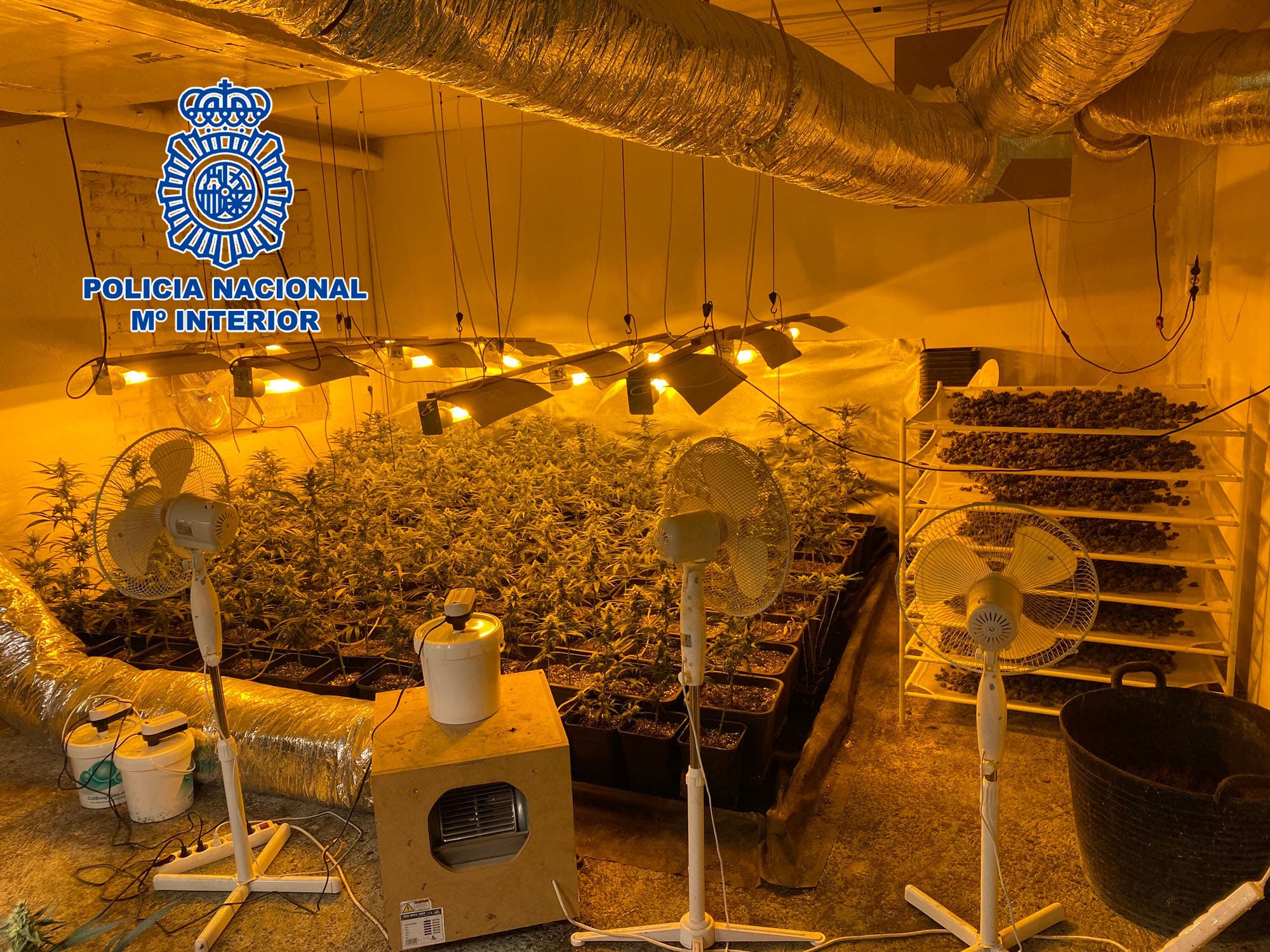 Agentes de la Policía Nacional, gracias a la colaboración ciudadana, han desarticulado una red de cultivo y tráfico de esta sustancia estupefaciente cuya planta de producción estaba ubicada a las puertas de un instituto de la localidad de Rivas Vaciamadrid. El sistema de producción se encontraba en un zulo creado en una vivienda unifamiliar al que se accedía desde el solado del garaje, contando con un sofisticado sistema de cultivo de las plantas que permitía una producción continua del estupefaciente.