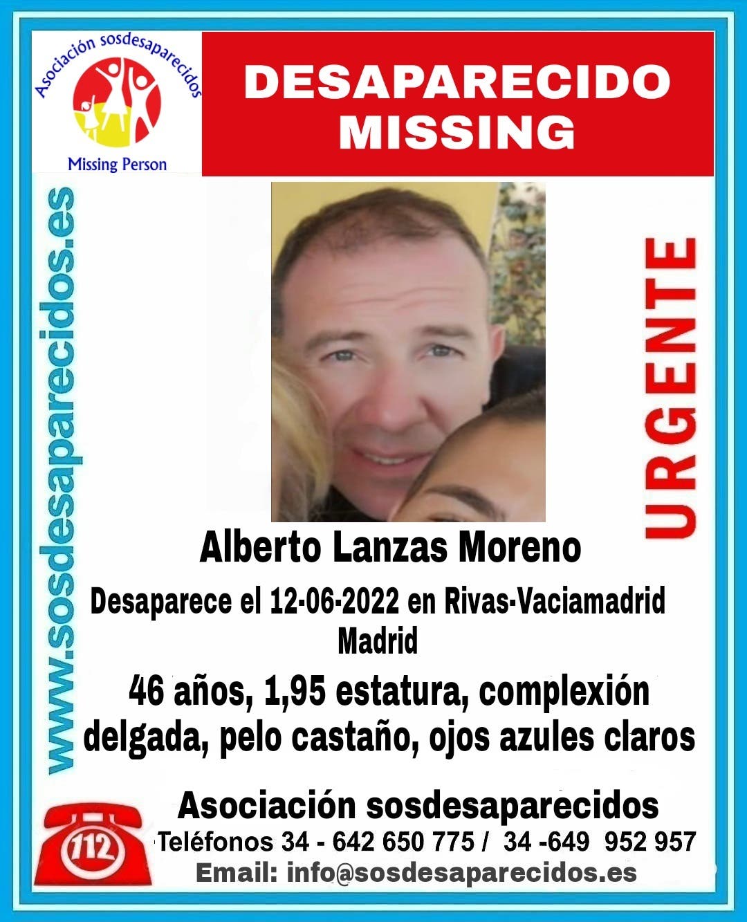 La asociación SOS Desaparecidos ha lanzado en las últimas horas una alerta por la desaparición de Alberto Lanzas Moreno, un vecino de Rivas Vaciamadrid desaparecido el pasado día 12 de junio en la localidad.