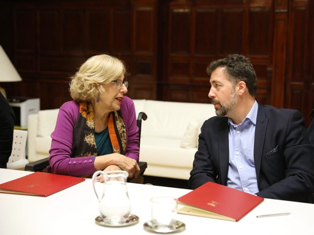 La alcaldesa de Madrid, Manuela Carmena, y el alcalde de Rivas Vaciamadrid, Pedro del Cura, se han reunido este miércoles en el Palacio de Cibeles para firmar un protocolo de intercambio de límites territoriales entre ambos municipios. Este documento da cumplimiento al Pacto Regional de la Cañada Real, suscrito en mayo de 2017 por la Delegación del Gobierno en Madrid, la Comunidad y los ayuntamientos de Madrid, Coslada y Rivas.