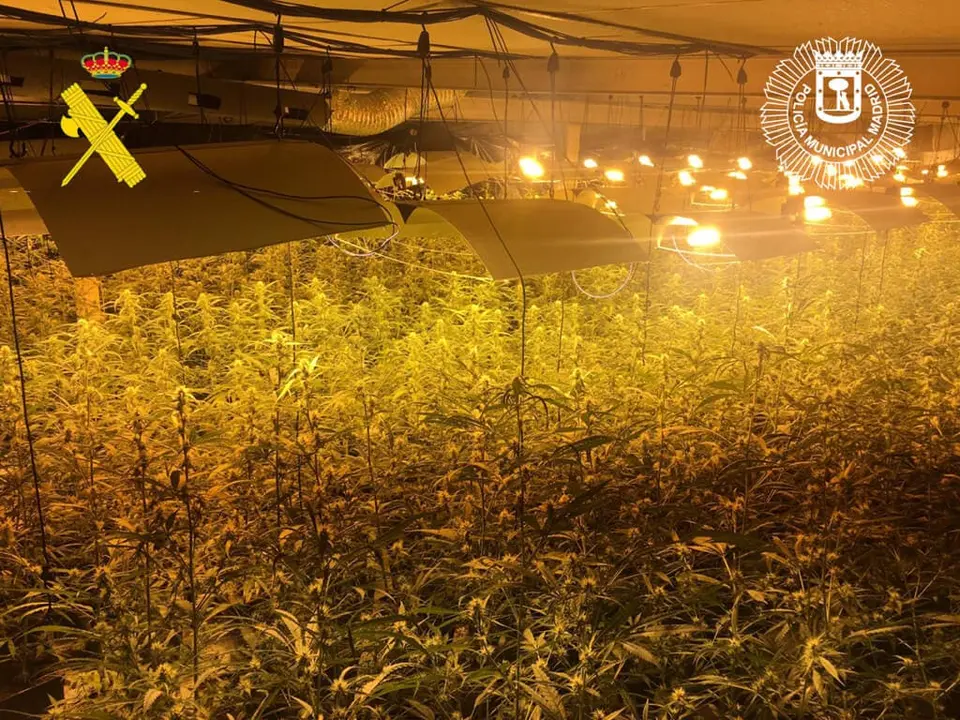 En el registro de las naves se encontraron una plantación de cannabis con 2.447 plantas en macetas, de 1,5 metros de altura, bombillas para el crecimiento y floración de las plantas, equipos de aire acondicionado, ventiladores, extractores, fertilizantes y un transformador conectado al tendido eléctrico.