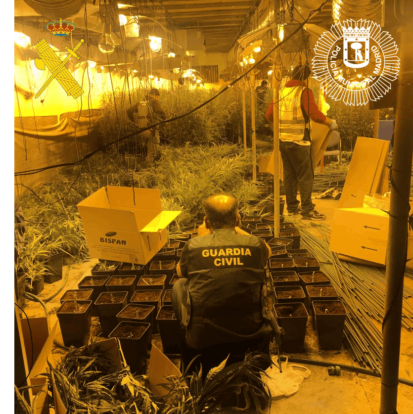 Los agentes al identificar a los responsables que se encontraban a cargo de las naves, observaron que estas personas estaban domiciliadas en Rivas Vaciamadrid, por lo que se pusieron en contacto con el Área de Investigación de Guardia Civil del municipio, siendo informados de que tenían antecedentes por delitos contra la salud pública.