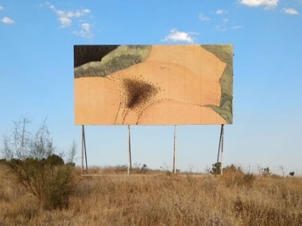 La obra se enmarca en una campaña artística impulsada por el propio Consistorio, que eligió a 13 artistas nacionales e internacionales para que intervinieran sobre vallas publicitarias.
