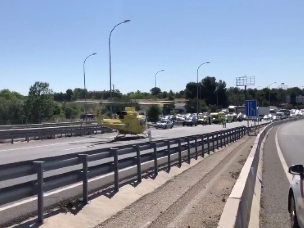 Un helicóptero aterriza en la A3 para evacuar a un motorista herido
