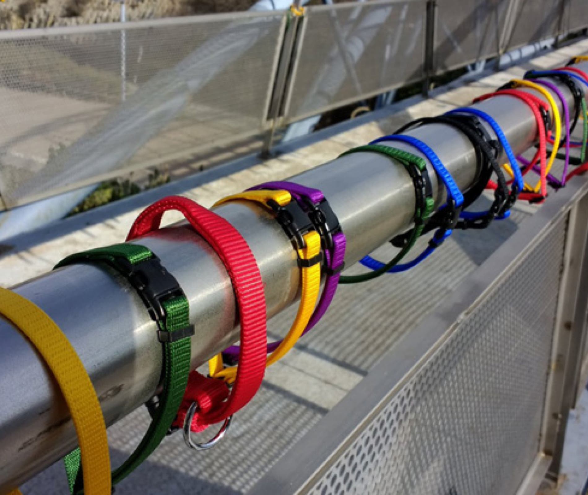 El puente del Parque Lineal de Rivas ha sido adornado con más de 800 collares de perros para denunciar el elevado número de mascotas que se abandonan cada año en España, en una iniciativa que busca sensibilizar a la ciudadanía para que se comprometa con sus mascotas.