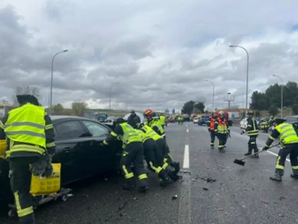 Han tenido que ser cortados los carriles centrales de la autovía, sentido entrada a Madrid, para que los Bomberos y las grúas pudieran retirar los coches, algunos de ellos con importantes daños.