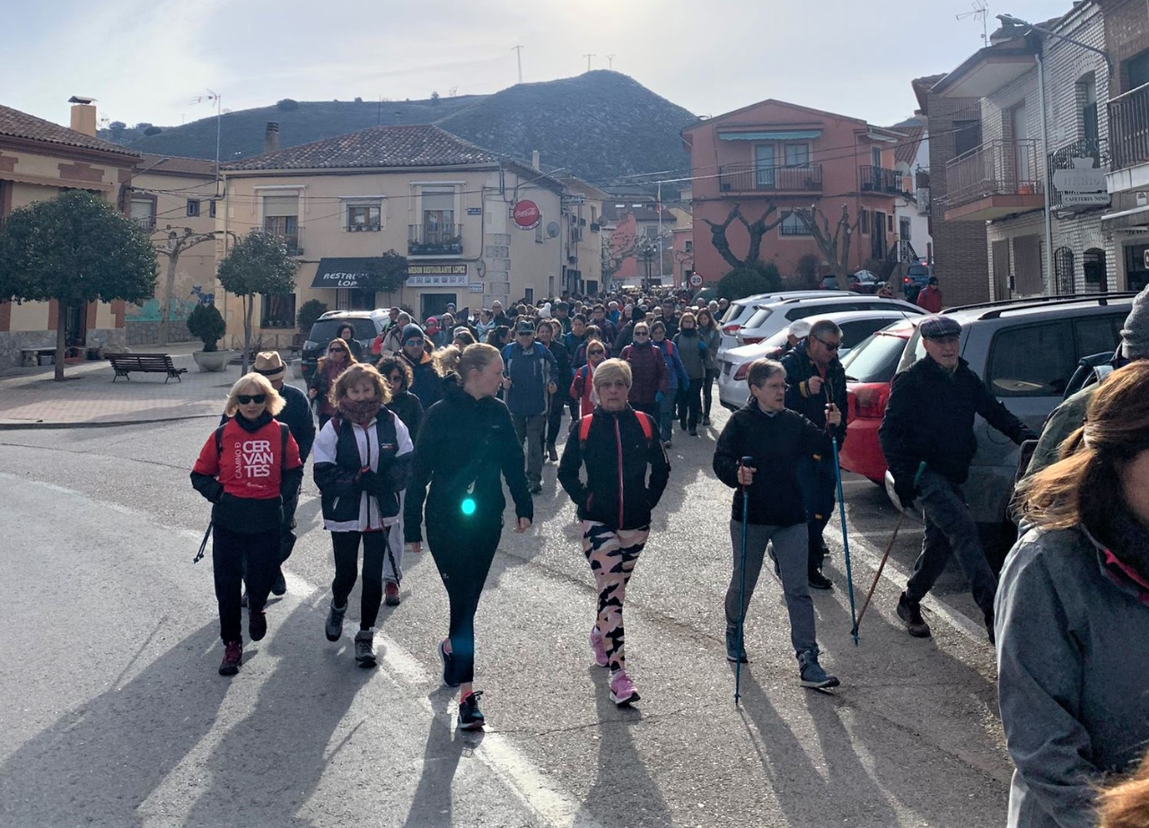 La Plaza Mayor del municipio fue el punto de partida y la meta de esta duodécima ruta, de unos 7 kilómetros aproximadamente y de dificultad media, en los que tuvieron especial protagonismo dos intensas subidas que permitieron disfrutar de unas impresionantes vistas al llegar a la cima. Volvió el intenso frío al Camino de Cervantes, pero el sol alivió sus síntomas y el viento respetó a los caminantes durante la jornada.