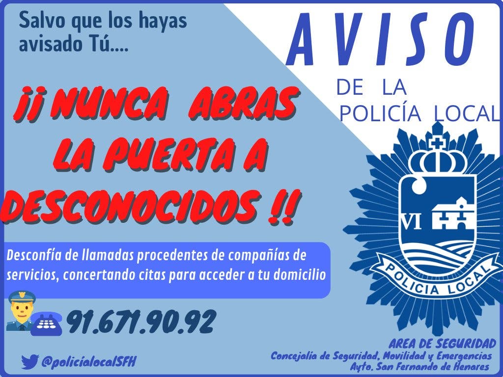 Asimismo, recuerda que por normal general no se debe abrir la puerta a desconocidos. «Desconfíe de llamadas procedentes de compañías de servicios, concertando citas para acceder su domicilio», insiste la Policía Local.
