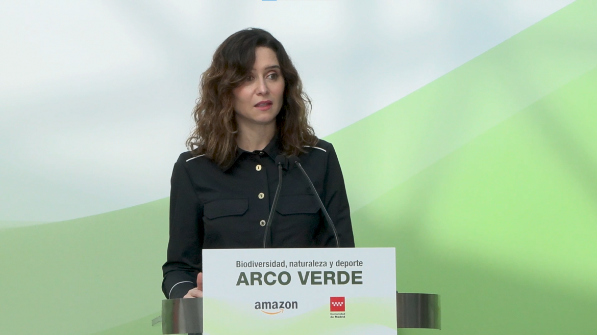La presidenta de la Comunidad de Madrid, Isabel Díaz Ayuso, ha anunciado hoy la plantación de 16.700 nuevos árboles y arbustos para el corredor Arco Verde gracias a un convenio con la empresa Amazon. «En los próximos años vamos a hacer importantes inversiones y políticas realistas frente a las sectarias, cuyos fines son distintos al cuidado del medio ambiente, por mucho que se vistan de verde y, además, contando con las gentes del campo, verdaderos agentes medioambientales», ha señalado la presidenta.