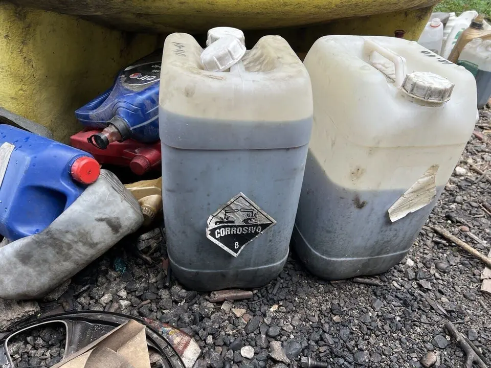 Además, hallaron varios motores semidesmontados y depositados en el suelo, que estaban vertiendo fluidos en la zona terriza, en la que se apreciaban grandes áreas oscurecidas y aceitosas, según pudieron comprobar los agentes. Asimismo, se localizaban bidones de aceite y otros materiales, sin ningún tipo de etiquetado.