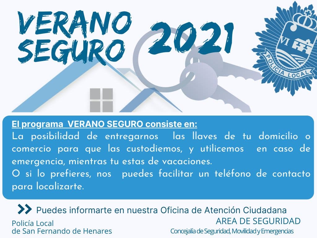Por otro lado, la Policía de San Fernando recuerda la puesta en marcha del Programa Verano Seguro, que permite entregar a los agentes las llaves de la vivienda o negocio durante las vacaciones.