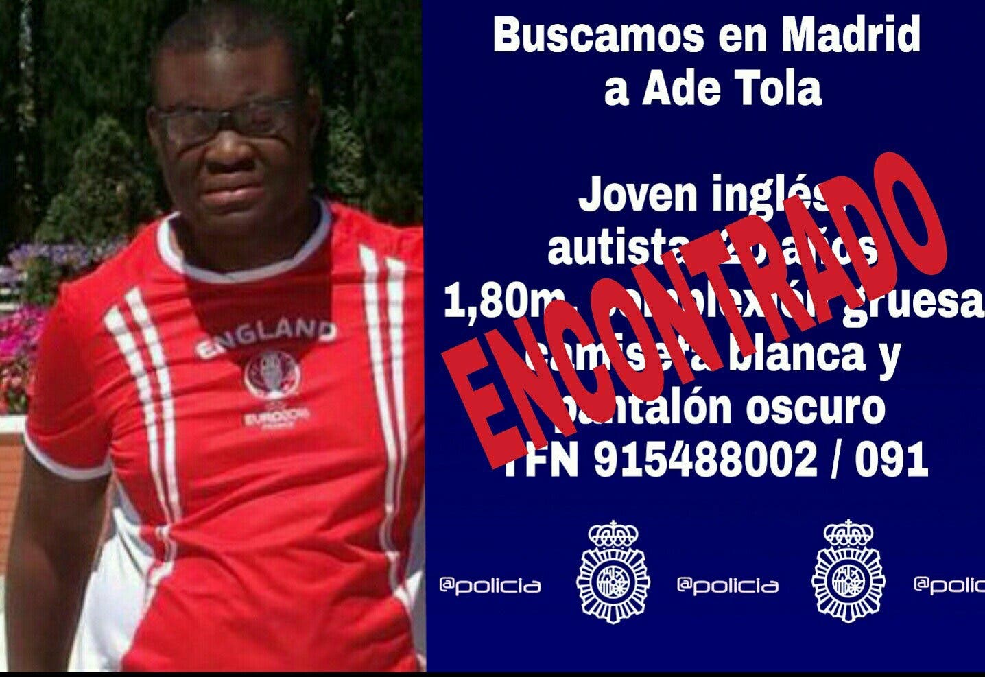 El joven Ade Tola Awoderu ha sido localizado en El Escorial por Policía Local y trabajadores de Renfe.