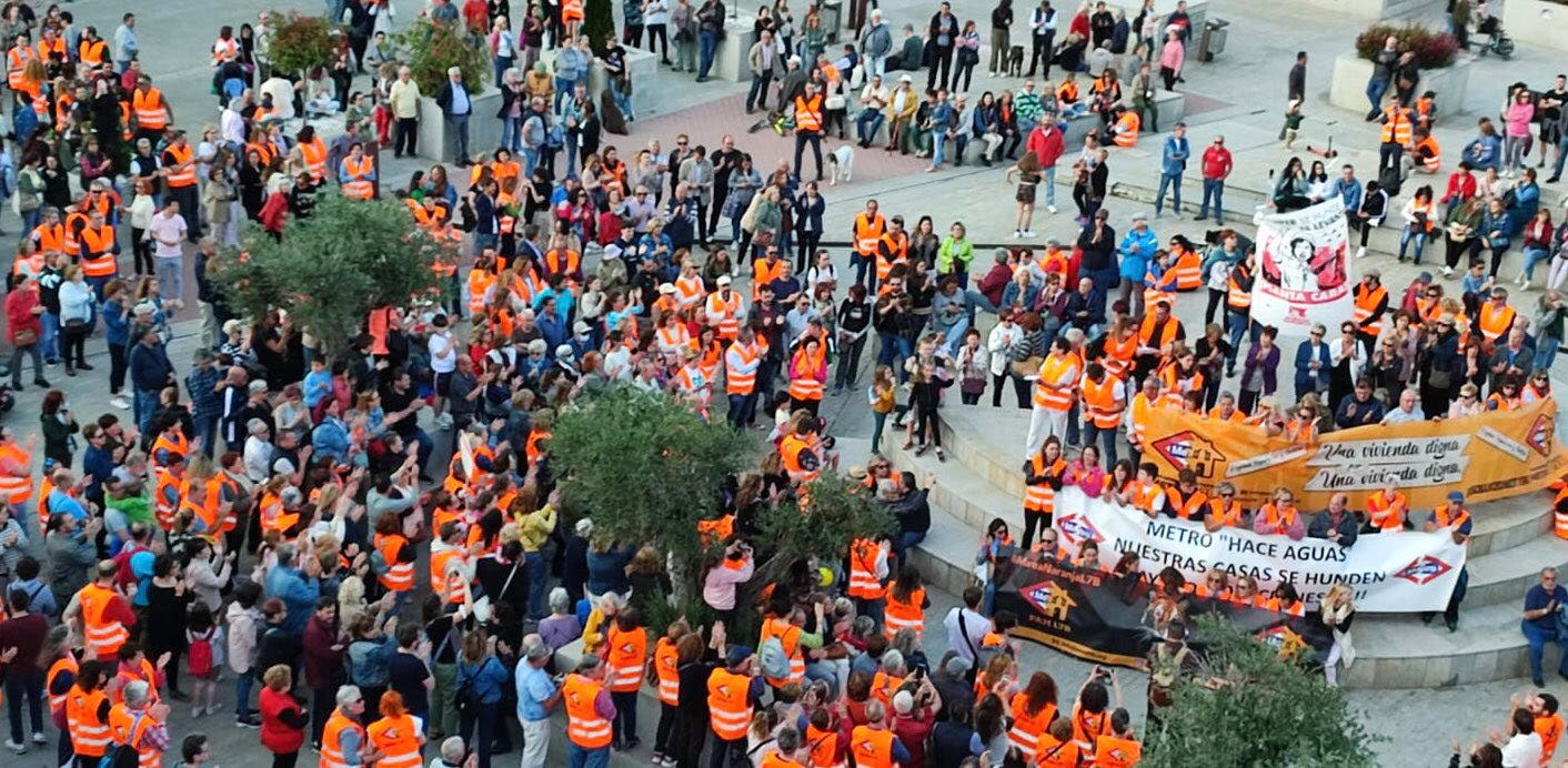Afectados por Metro y vecinos de San Fernando de Henares, acompañados por sindicatos y políticos de la izquierda, se manifestaron este miércoles por la tarde por las calles del municipio para exigir una solución definitiva a los problemas de la Línea 7B de Metro, que ha causado daños en 600 viviendas.