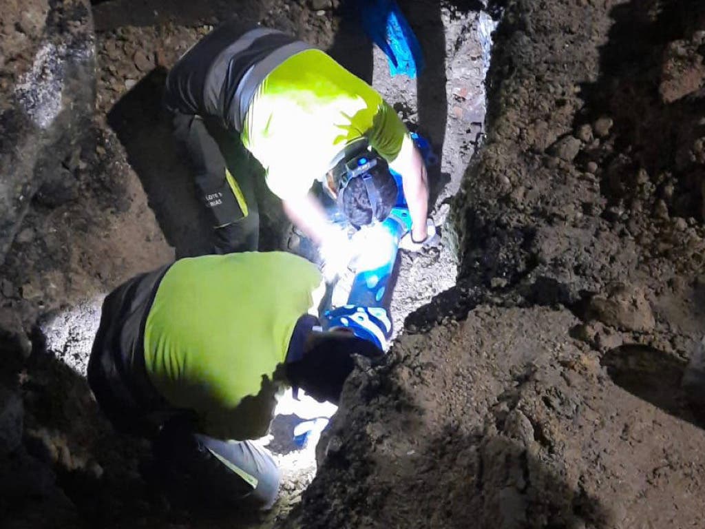 Durante las obras de consolidación del terreno de la zona afectada por la L7B de Metro en San Fernando de Henares se perforó anoche, por error, una tubería del Canal de Isabel II.