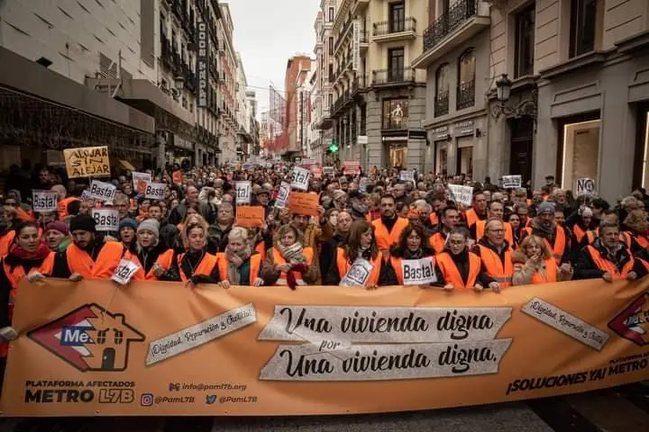 La marcha, convocada por la Plataforma de Afectados, ha comenzado en la Plaza de Callao y ha discurrido por la calle Preciados hasta la Puerta del Sol con gritos de «Metro culpable, Ayuso responsable» y contra Esperanza Aguirre, que fue quien inauguró la línea.