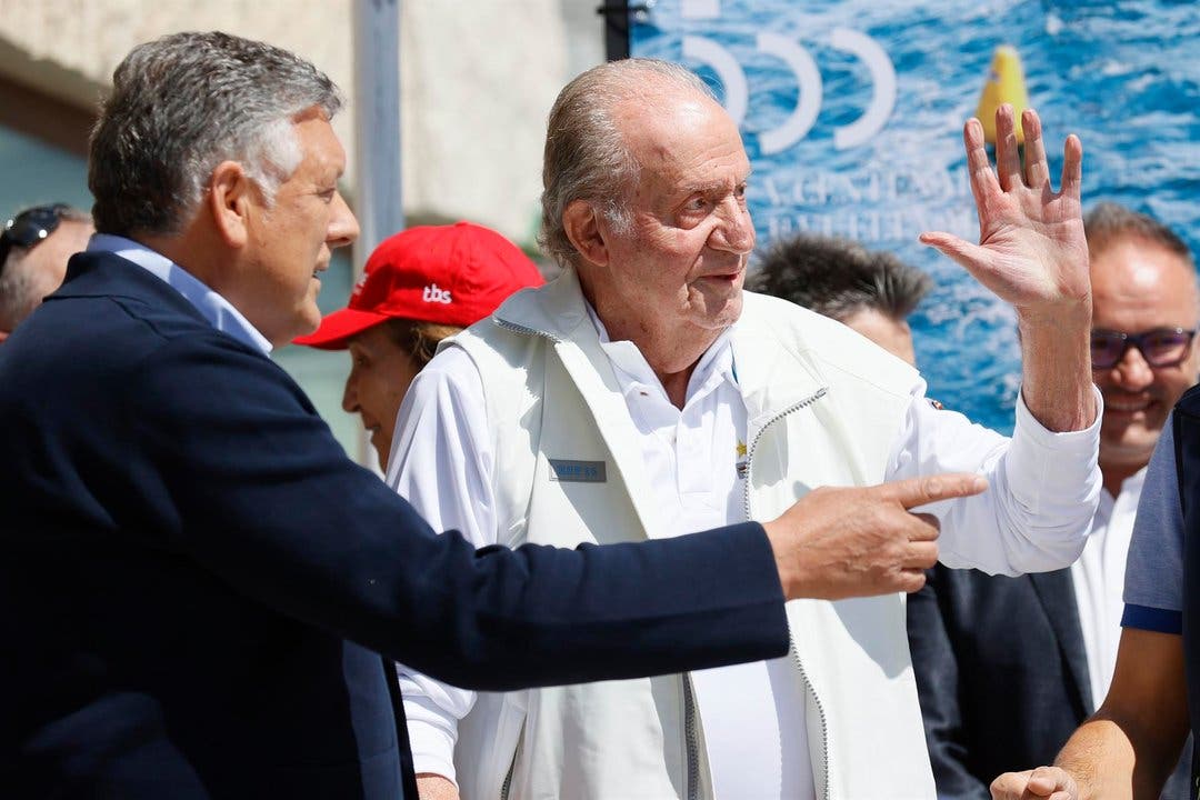 El rey Juan Carlos I ha llegado a las 12:29 horas de este viernes al Real Club Náutico de Sanxenxo, junto a su amigo personal y anfitrión Pedro Campos, y ha sido recibido con una bandera de España que ondeaba en uno de los balcones y efusivos saludos, aplausos y vítores de «¡Viva España!» y «¡Viva el rey!».