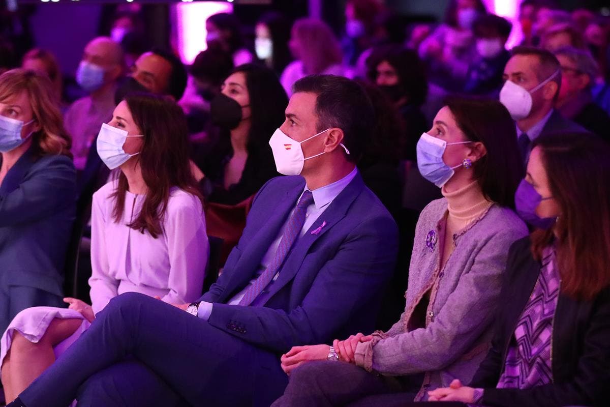 El presidente del Gobierno señaló también, durante su intervención en el acto conmemorativo del Día Internacional de las Mujeres, organizado por el Ministerio de Igualdad, celebrado en el Círculo de Bellas Artes, que España ocupa la sexta posición de la UE en igualdad de género y que «tenemos el Gobierno con más mujeres de la Unión Europea y de toda su historia»: el 60,9% de sus miembros son ministras. Sin embargo, en su opinión, «lo que nos convierte en un Gobierno feminista es que hacemos política feminista. Esto es lo verdaderamente transformador, convertir el feminismo en una política transversal», porque «una cultura de la igualdad solo se puede consolidar con políticas públicas que tengan perspectiva de género». En este sentido, recordó que somos el único país de la UE que ha incorporado la igualdad entre hombres y mujeres como uno de los pilares sobre los que se asientan los procesos transformadores vinculados al Plan de Recuperación, Transformación y Resiliencia.