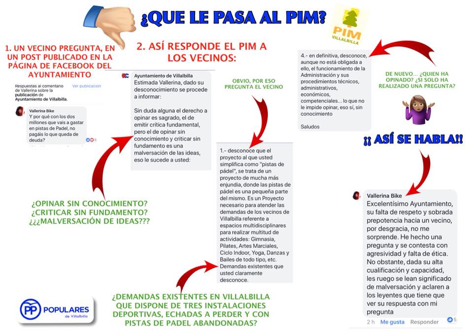 Una respuesta nada acorde con lo que se espera de una administración (y menos cuando la afectada sólo estaba haciendo una pregunta utilizando el sentido común), que los populares han querido denunciar públicamente y de forma esquemática bajo la cuestión: «¿Qué le pasa al PIM?».