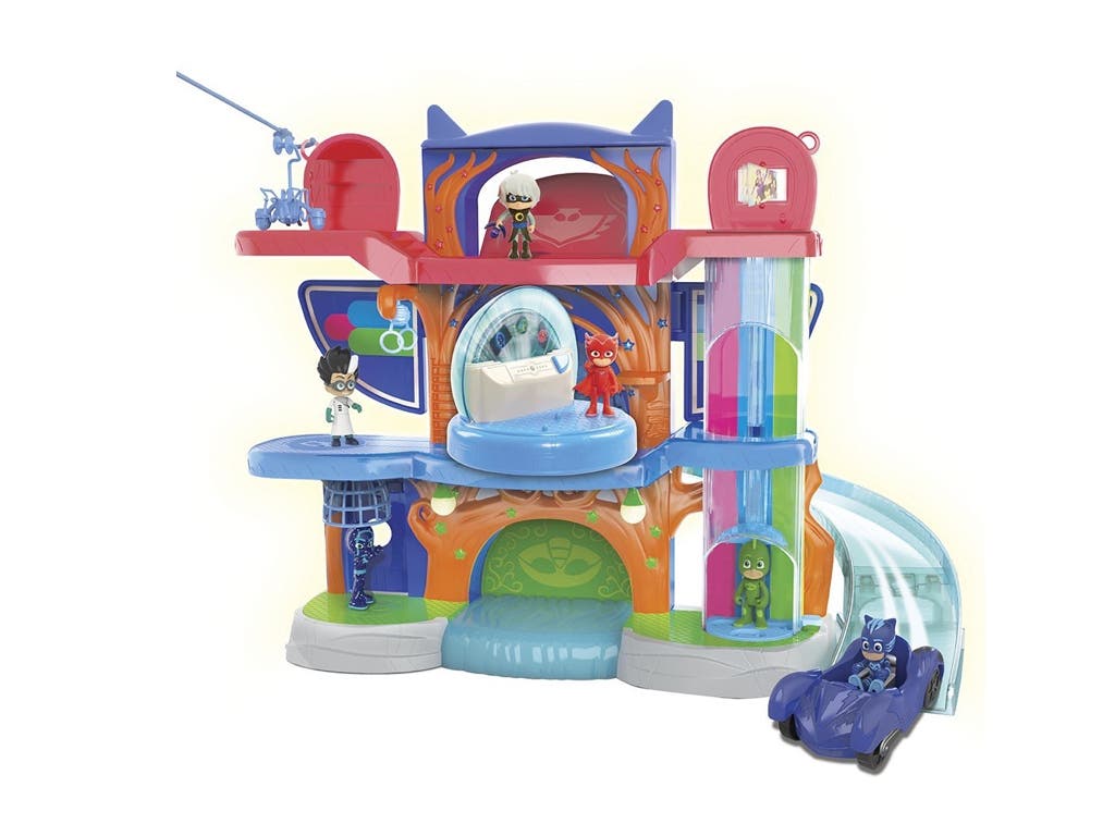 2. PJ Masks Centro de control: Centro de Control con rampa para coches, tres niveles y ascensor. Cuenta con luces, sonidos y sorpresas ocultas. Incluye dos figuras de los PJ Masks.