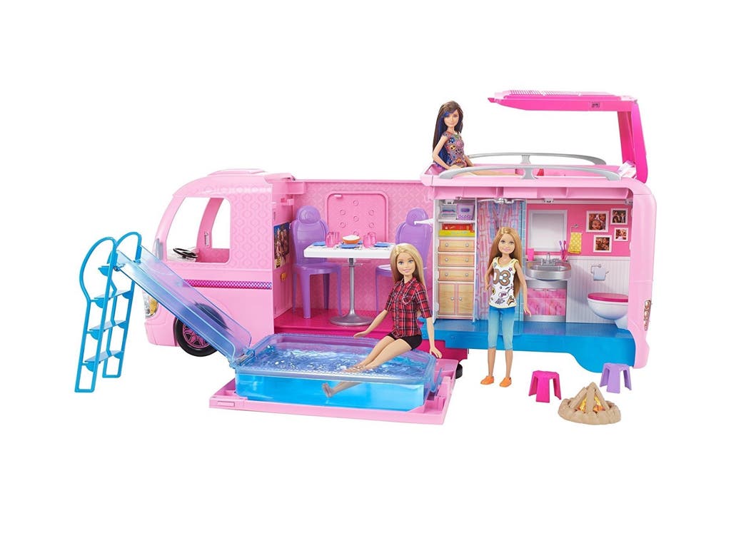 5. Súper Caravana de Barbie: La caravana de Barbie se transforma en una acampada con piscina con tan solo pulsar un botón.