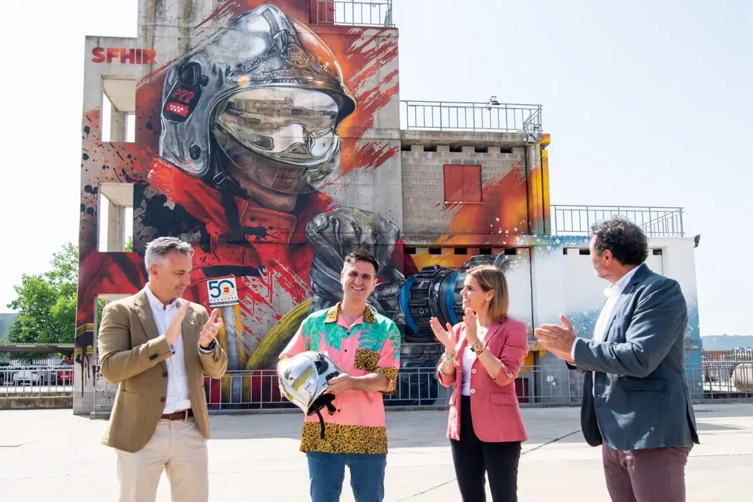 El Parque de Bomberos de Alcalá de Henares estrena un mural de Sfhir por su 50 aniversario