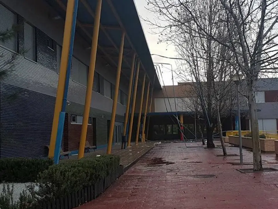 Este jueves por la tarde se levantó parte de la cubierta de la zona de aulas auxiliares del colegio (biblioteca, sala de arte…), aunque nadie resultó herido.