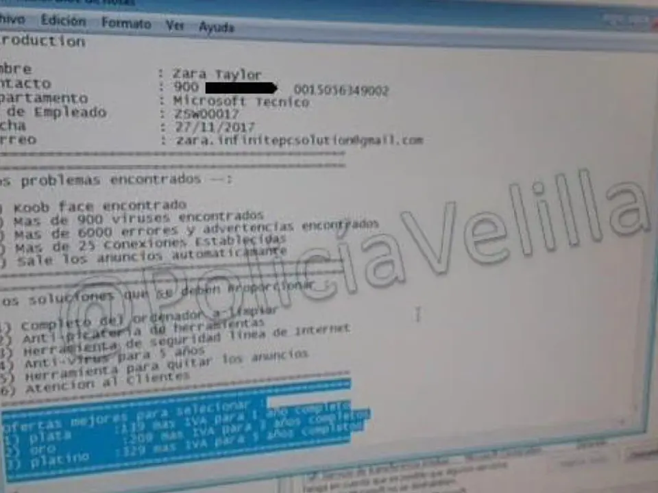 Según la Policía Local, uno de lo fines que persiguen los presuntos estafadores es vender un supuesto paquete antivirus que sería la única solución al problema que ellos mismos han generado para tal fin.