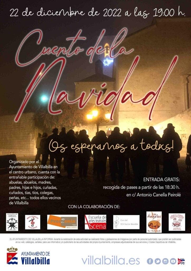 Los vecinos de Villalbilla, localidad cercana a Alcalá de Henares, volverán a representar este jueves, 22 de diciembre, el tradicional Cuento de Navidad, un espectáculo popular de danza, música y teatro que discurrirá a través de distintos escenarios distribuidos por el casco antiguo del municipio.