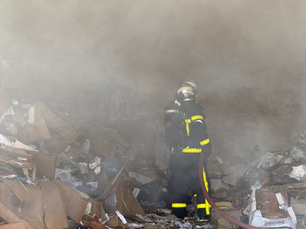 Arde una nave industrial que almacenaba papel y cartón en Torrejón de Ardoz