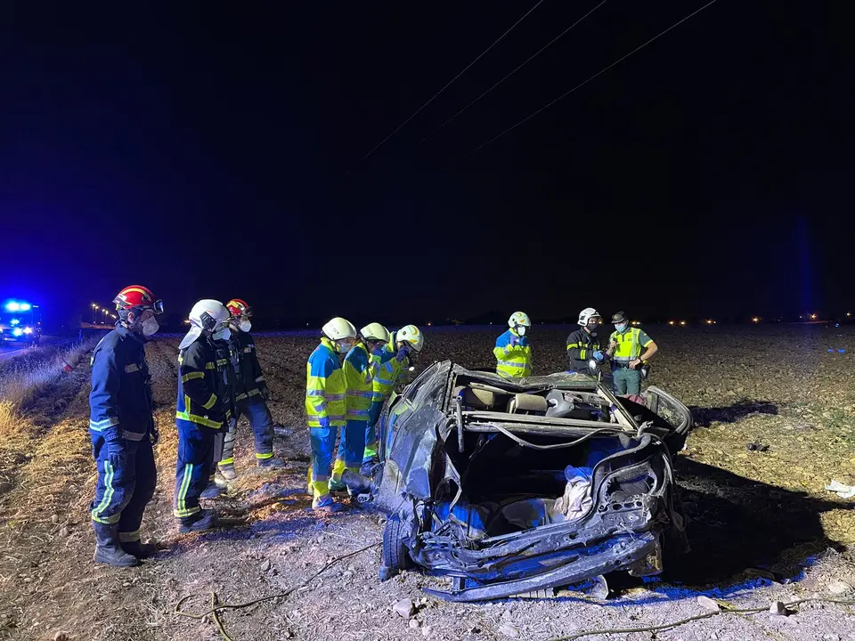 El coche ha dado varias vueltas de campana hasta quedar volcado totalmente sobre su techo, sin que en principio hubiera otros vehículos implicados en el siniestro.